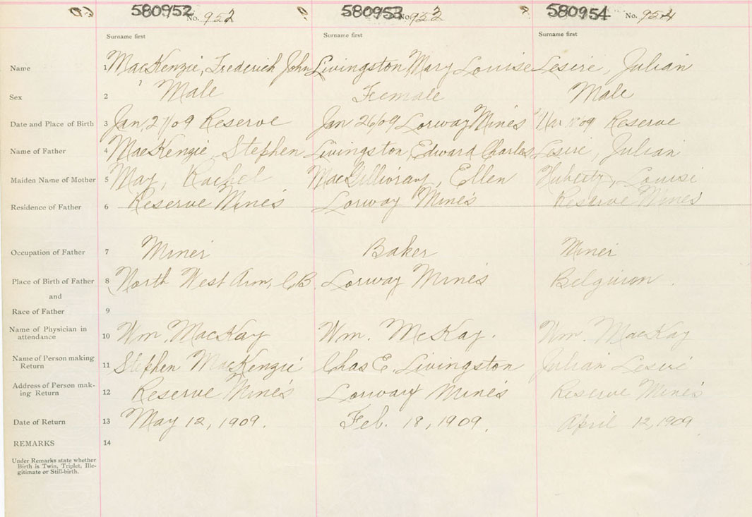 Male Birth Registration: Year: 1909 number: 58000952