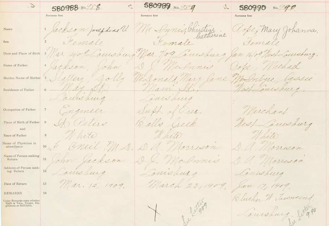 Female Birth Registration: Year: 1909 number: 58000988