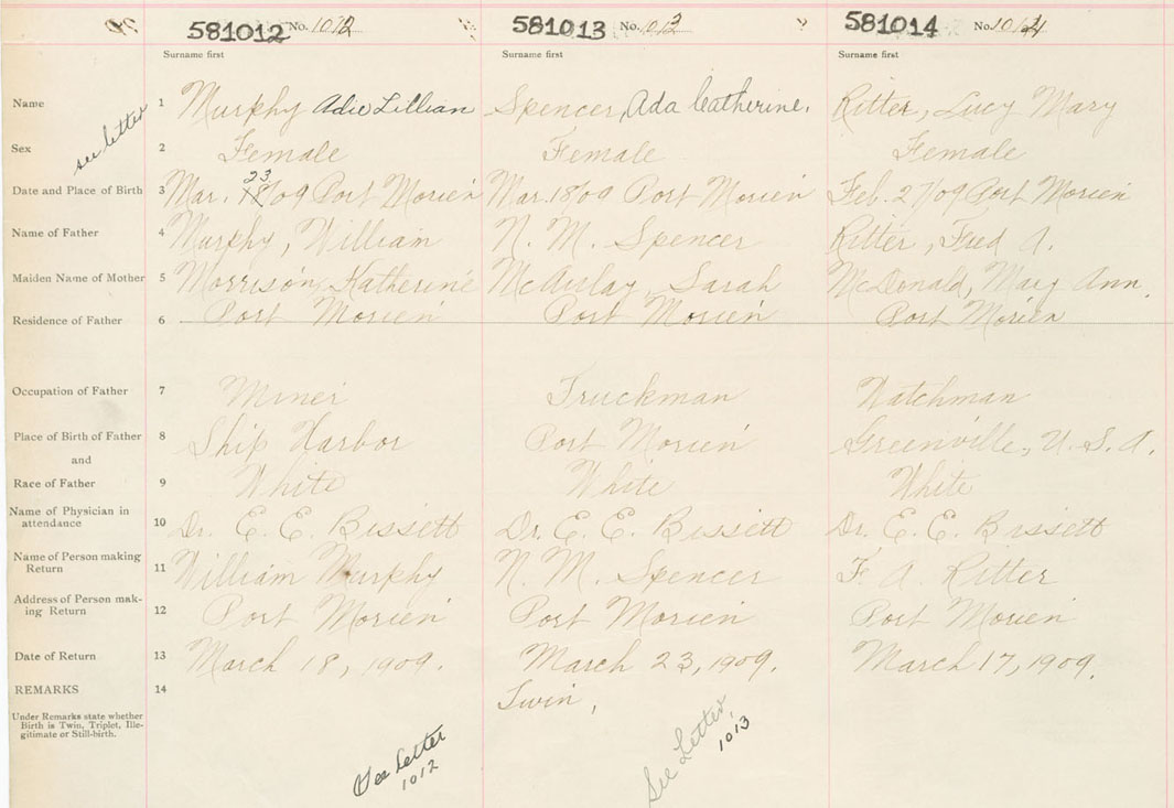 Female Birth Registration: Year: 1909 number: 58100012
