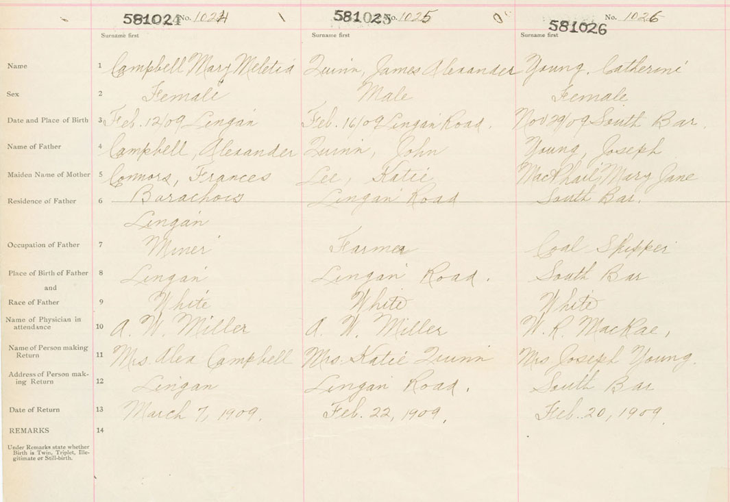Female Birth Registration: Year: 1909 number: 58100026