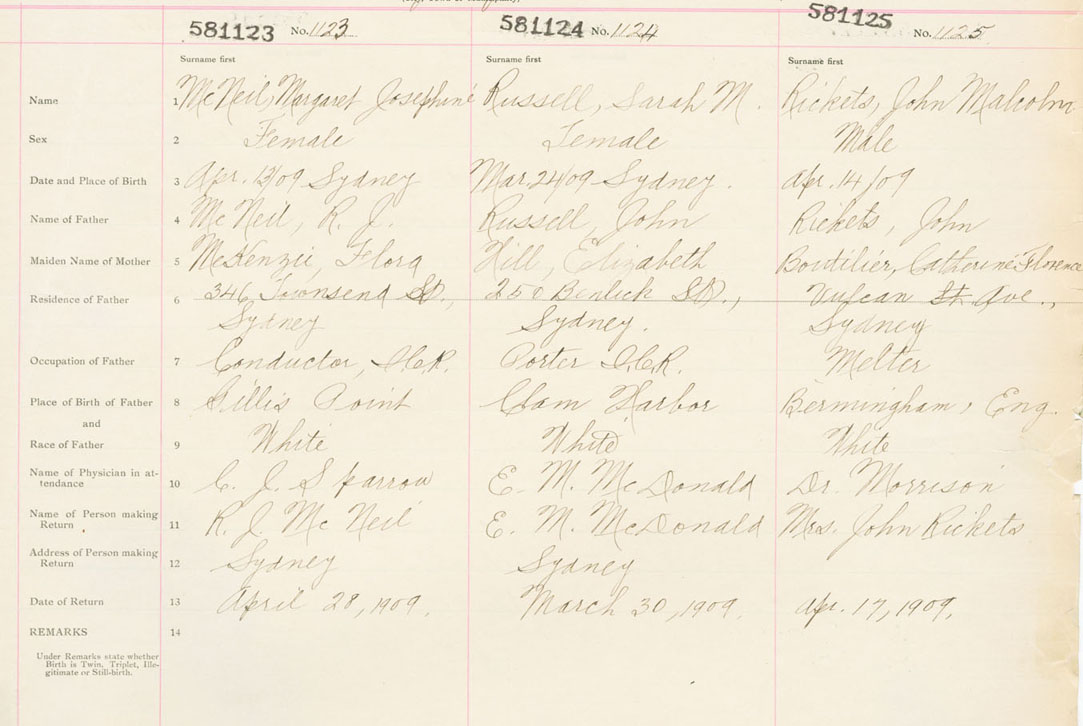 Male Birth Registration: Year: 1909 number: 58100125