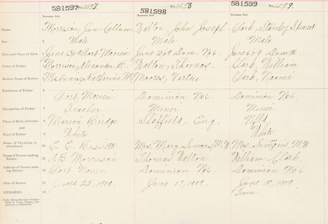 Male Birth Registration: Year: 1909 number: 58100599
