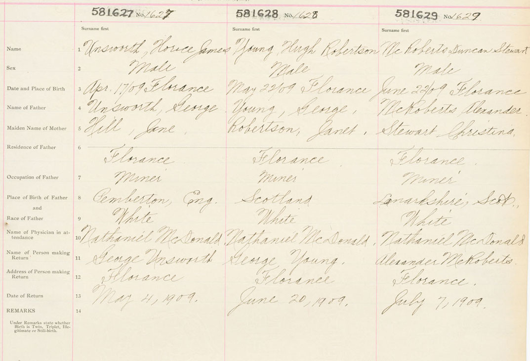 Male Birth Registration: Year: 1909 number: 58100627