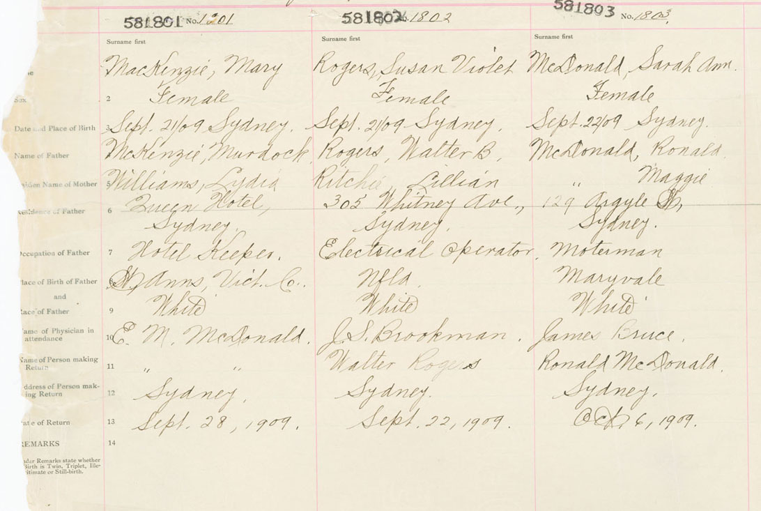 Female Birth Registration: Year: 1909 number: 58100801