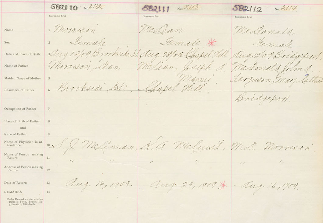 Female Birth Registration: Year: 1909 number: 58200112
