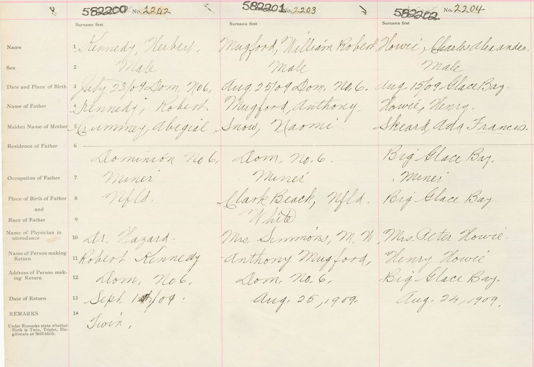 Male Birth Registration: Year: 1909 number: 58200202