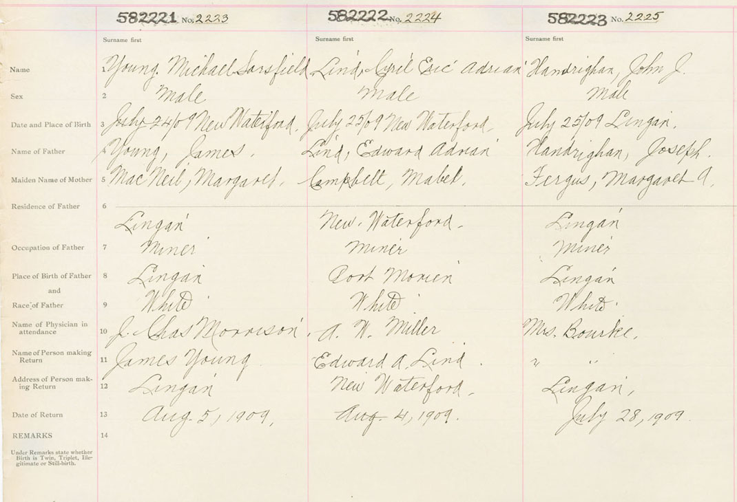 Male Birth Registration: Year: 1909 number: 58200221