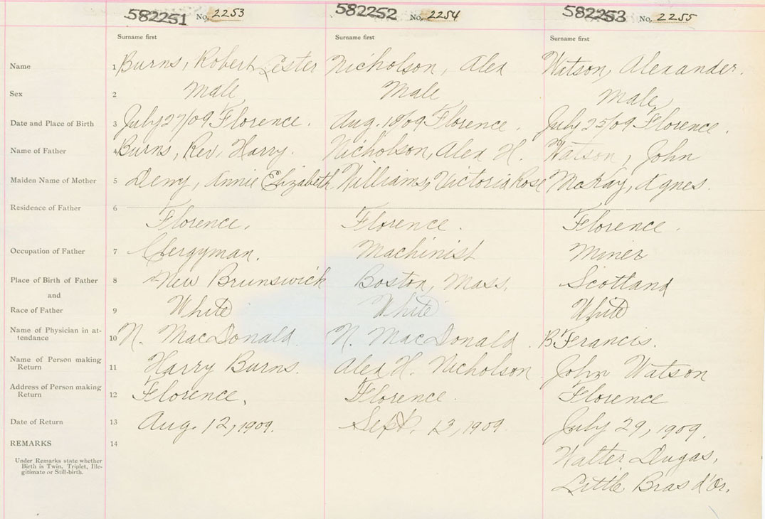 Male Birth Registration: Year: 1909 number: 58200253