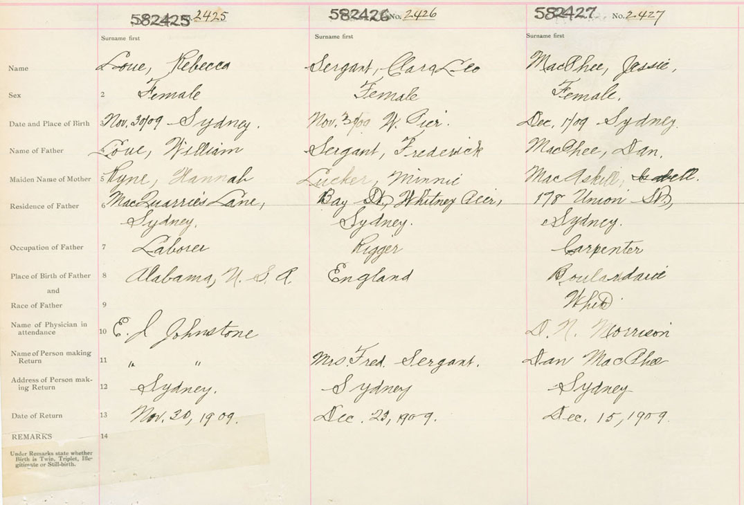 Female Birth Registration: Year: 1909 number: 58200427