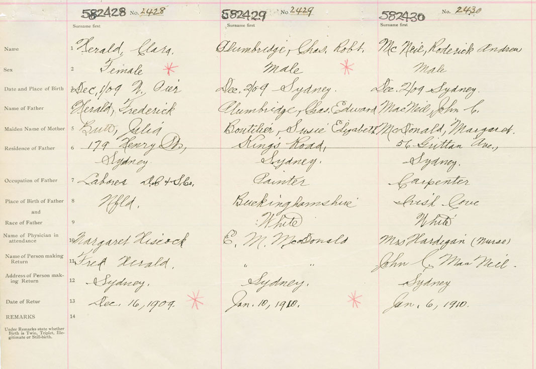 Male Birth Registration: Year: 1909 number: 58200430