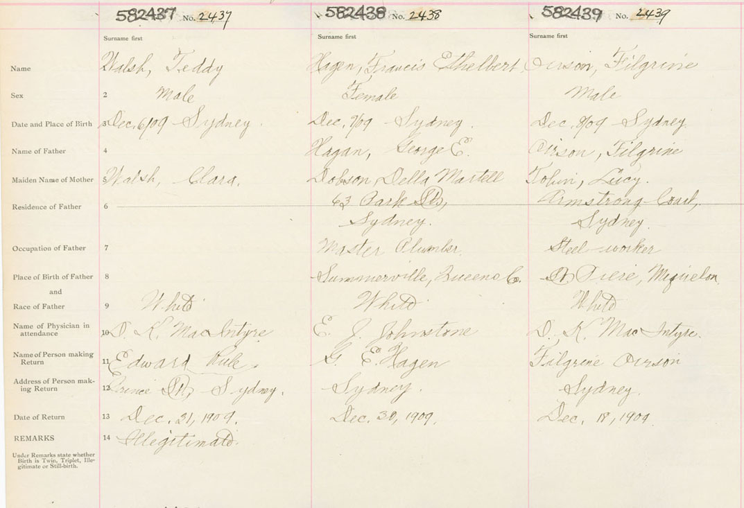 Male Birth Registration: Year: 1909 number: 58200437