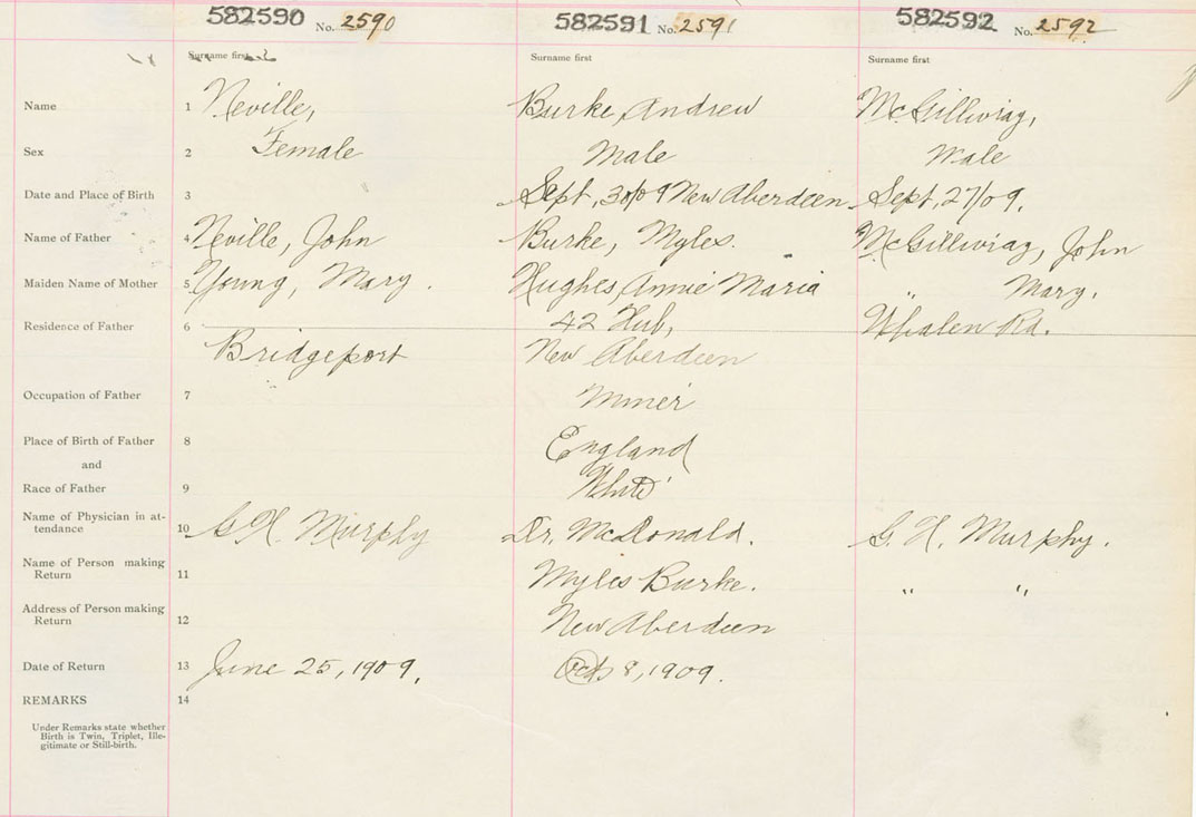 Female Birth Registration: Year: 1909 number: 58200590
