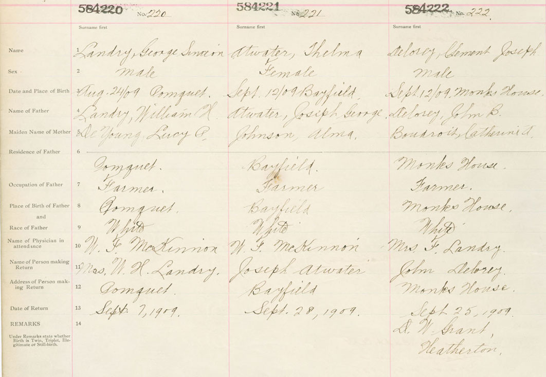 Male Birth Registration: Year: 1909 number: 58400220