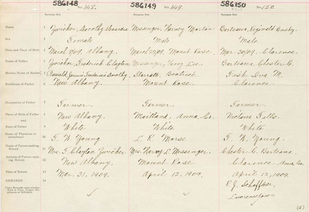 Male Birth Registration: Year: 1909 number: 58600150