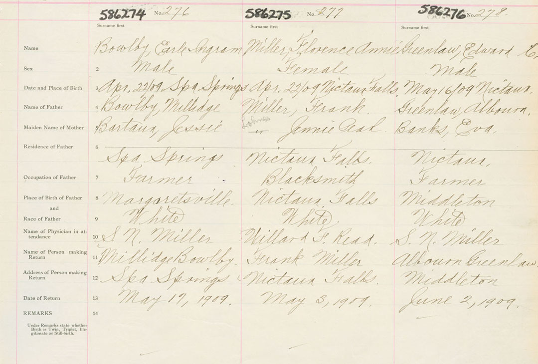 Male Birth Registration: Year: 1909 number: 58600274