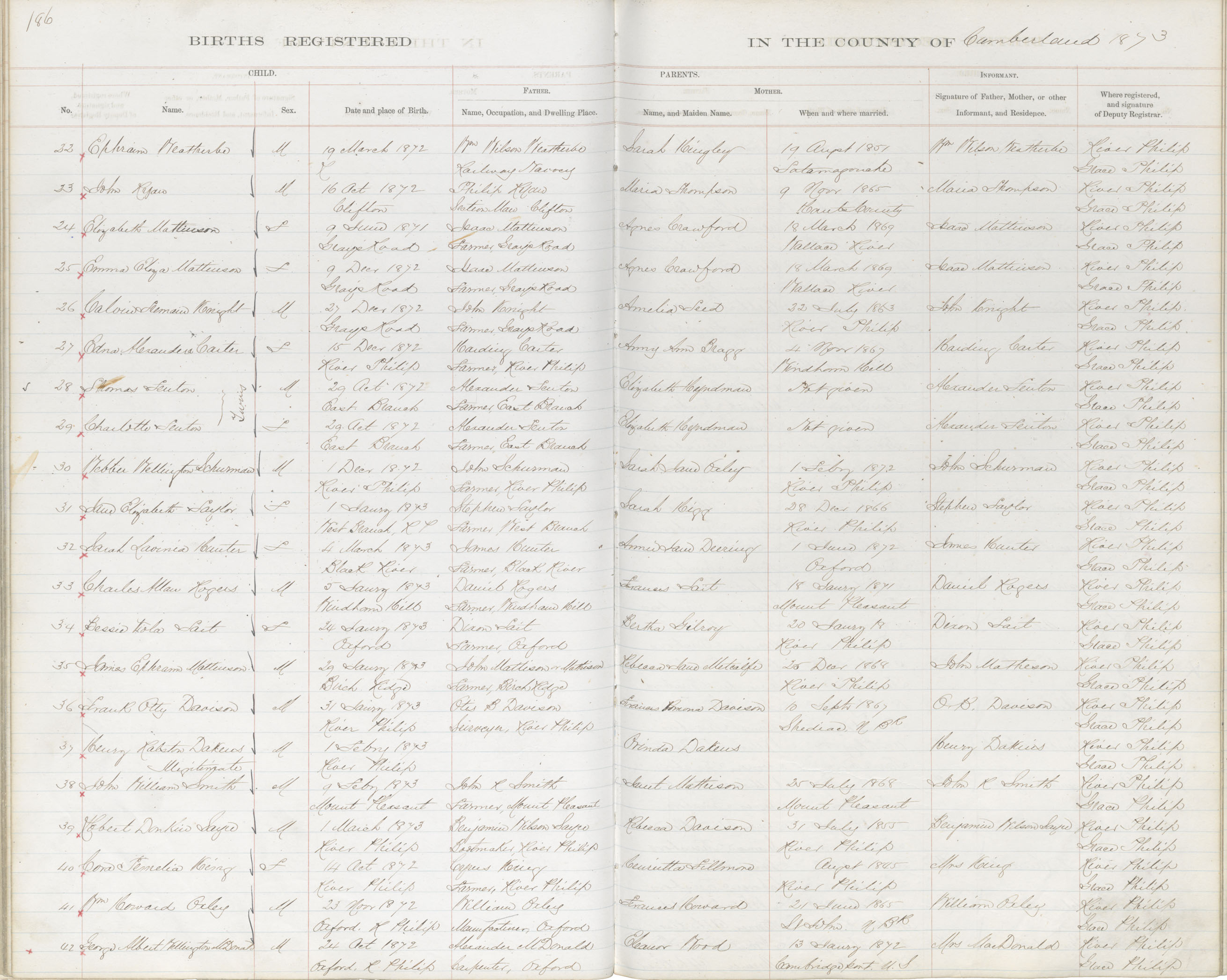 Birth Registration: Year: 1872 book: 1805 page: 186 number: 22