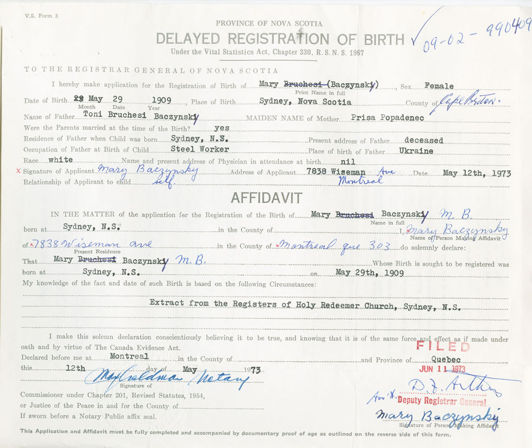 Female Birth Registration: Year: 1909 number: 99000409