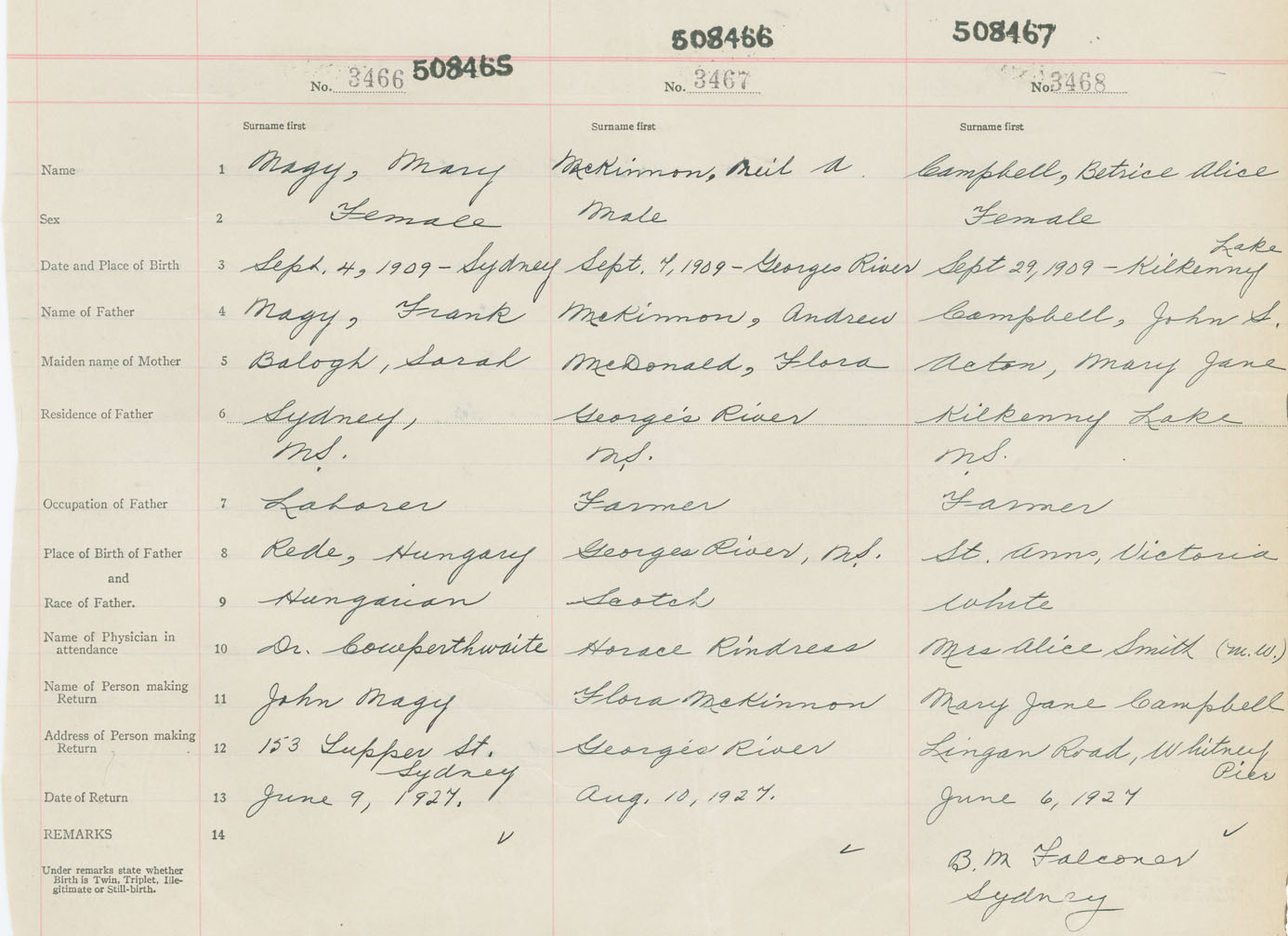 Female Birth Registration: Year: 1910 number: 50800465