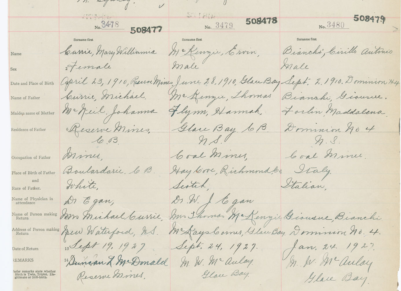 Male Birth Registration: Year: 1910 number: 50800479