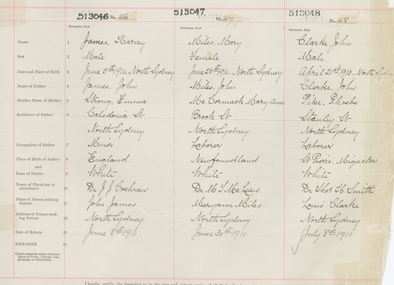 Male Birth Registration: Year: 1910 number: 51300046