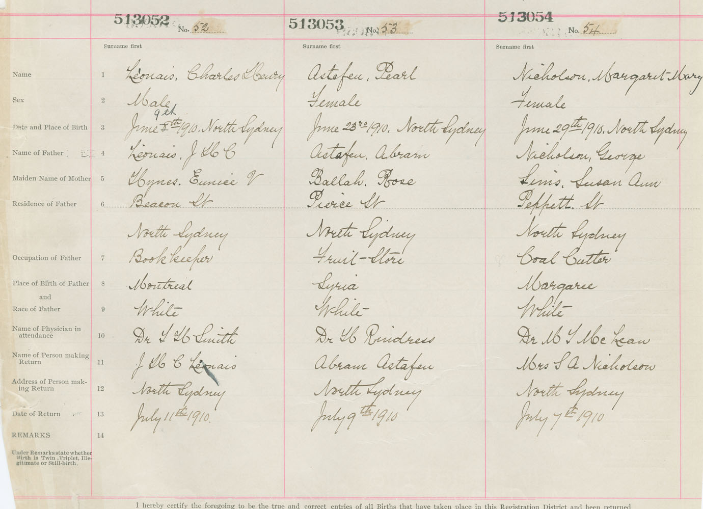 Male Birth Registration: Year: 1910 number: 51300052