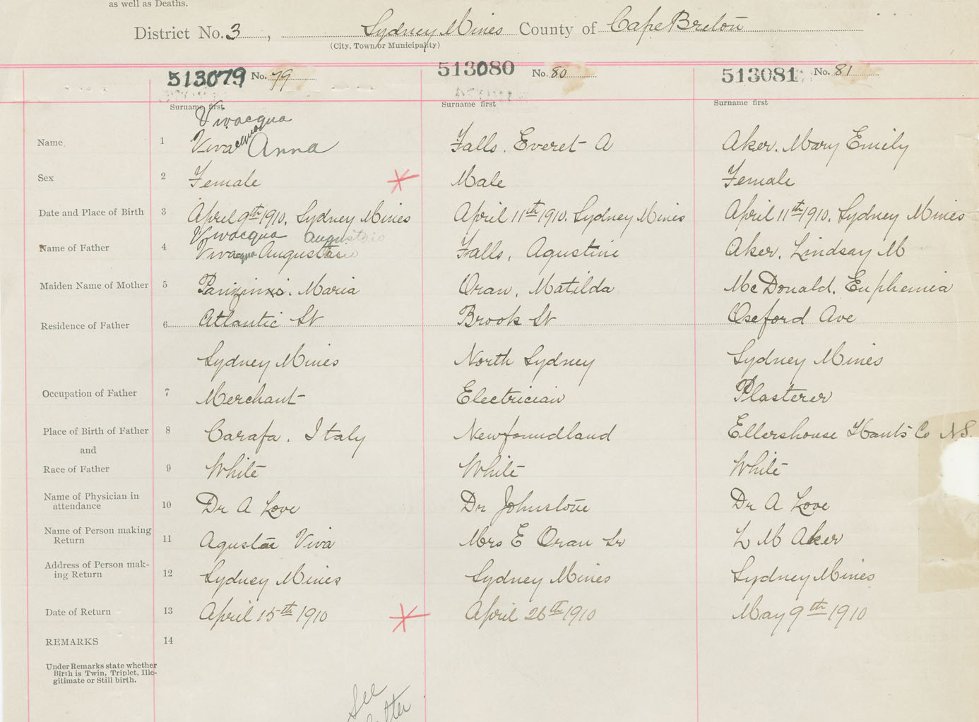 Female Birth Registration: Year: 1910 number: 51300079