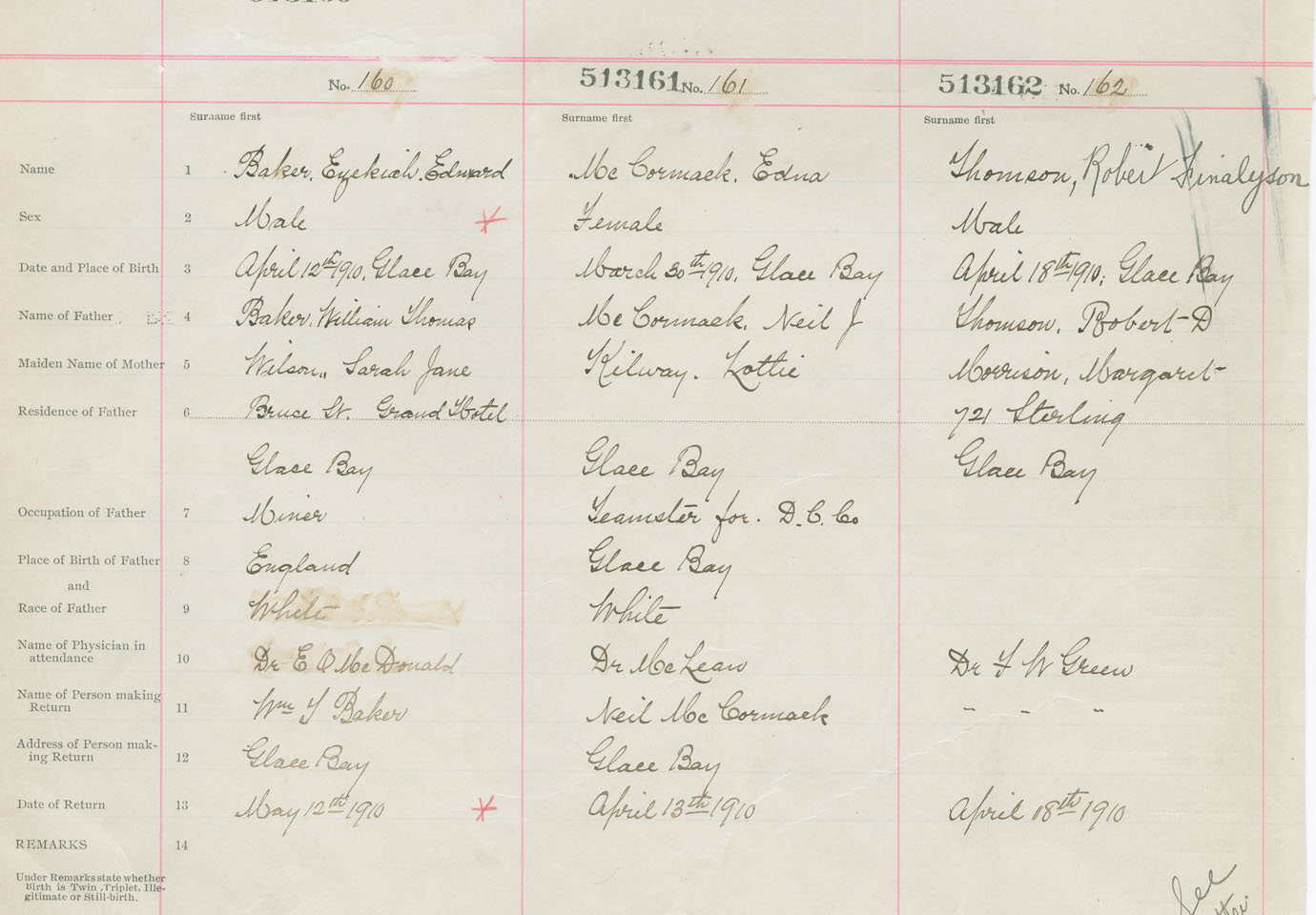 Male Birth Registration: Year: 1910 number: 51300162