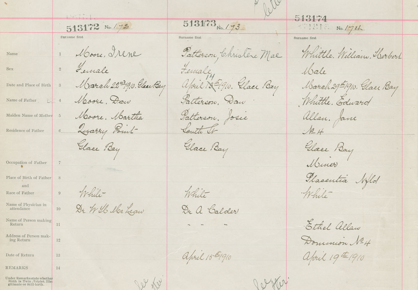 Male Birth Registration: Year: 1910 number: 51300174