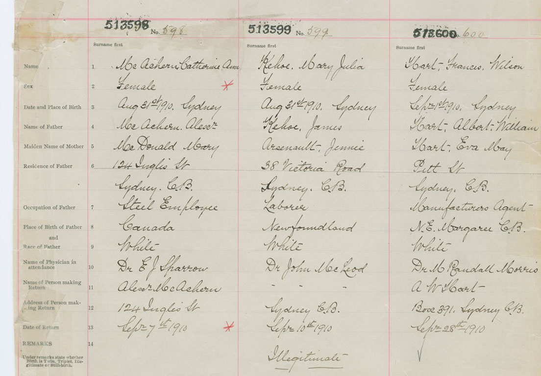 Female Birth Registration: Year: 1910 number: 51300598