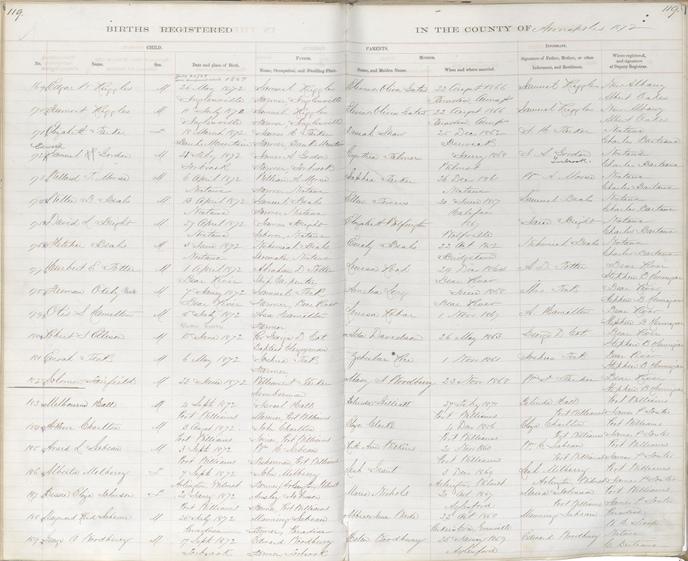 Birth Registration: Year: 1872 book: 1801 page: 119 number: 189