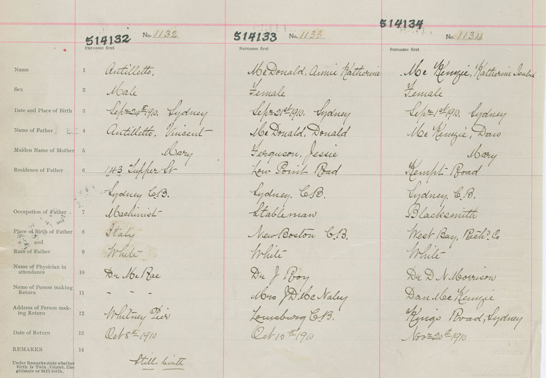 Female Birth Registration: Year: 1910 number: 51400134