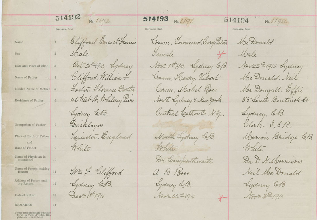 Male Birth Registration: Year: 1910 number: 51400192