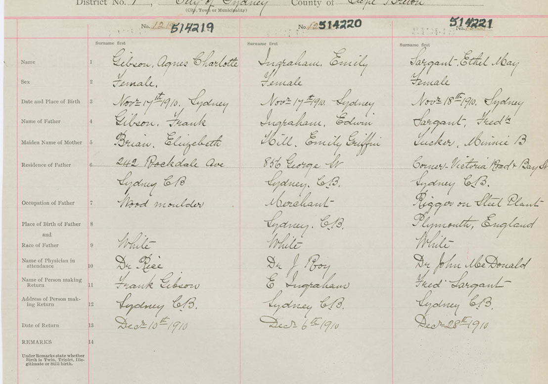 Female Birth Registration: Year: 1910 number: 51400221