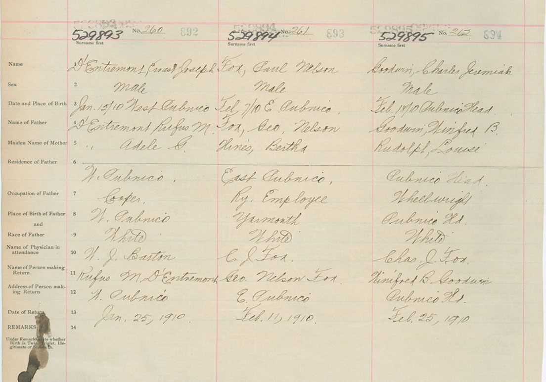 Male Birth Registration: Year: 1910 number: 52900893