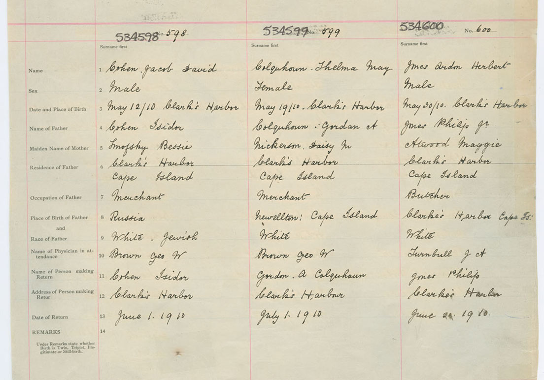 Male Birth Registration: Year: 1910 number: 53400598