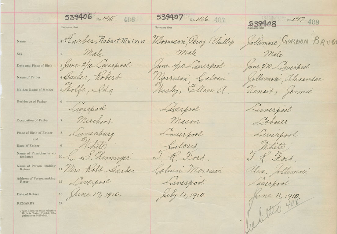 Male Birth Registration: Year: 1910 number: 53900406