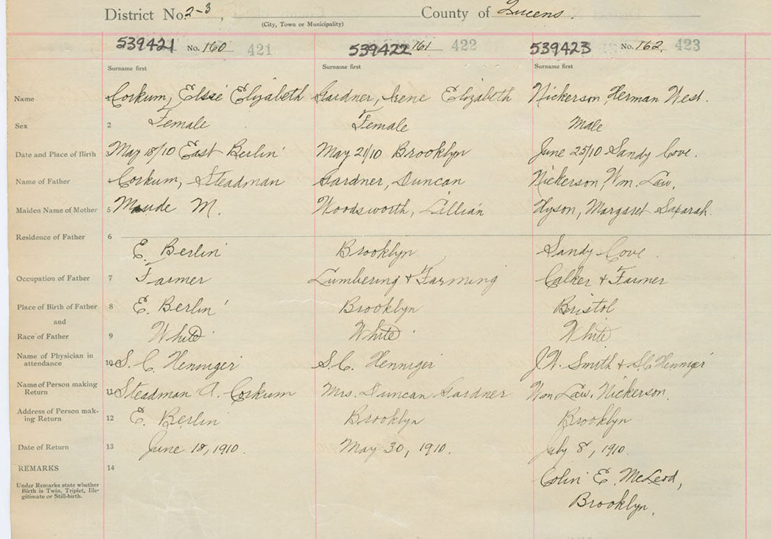 Female Birth Registration: Year: 1910 number: 53900421