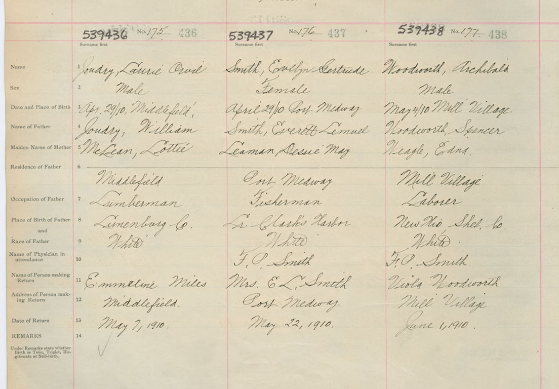 Male Birth Registration: Year: 1910 number: 53900436