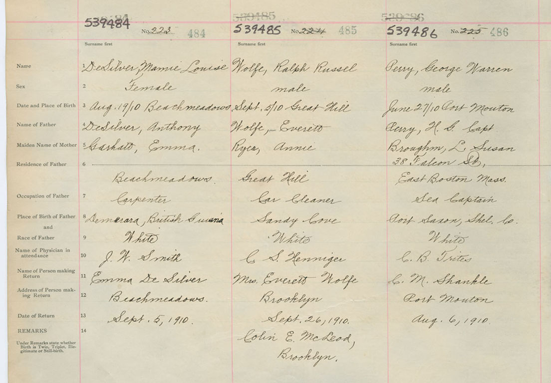 Male Birth Registration: Year: 1910 number: 53900486