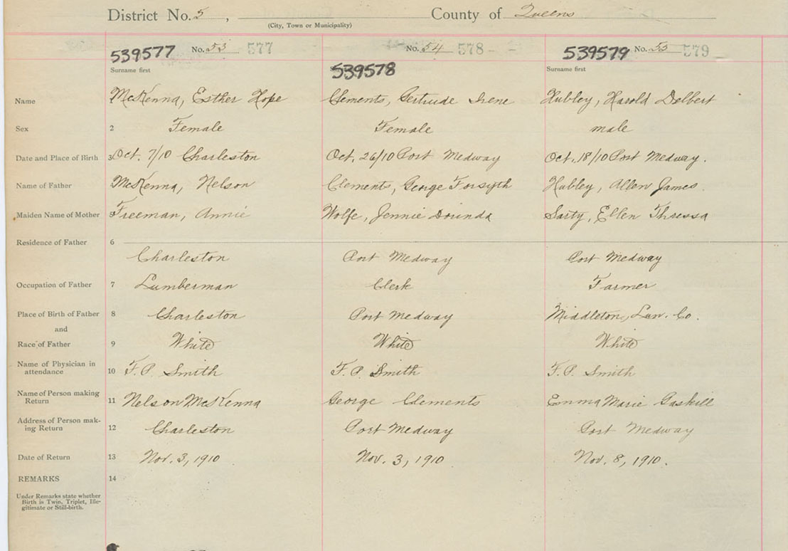 Female Birth Registration: Year: 1910 number: 53900577