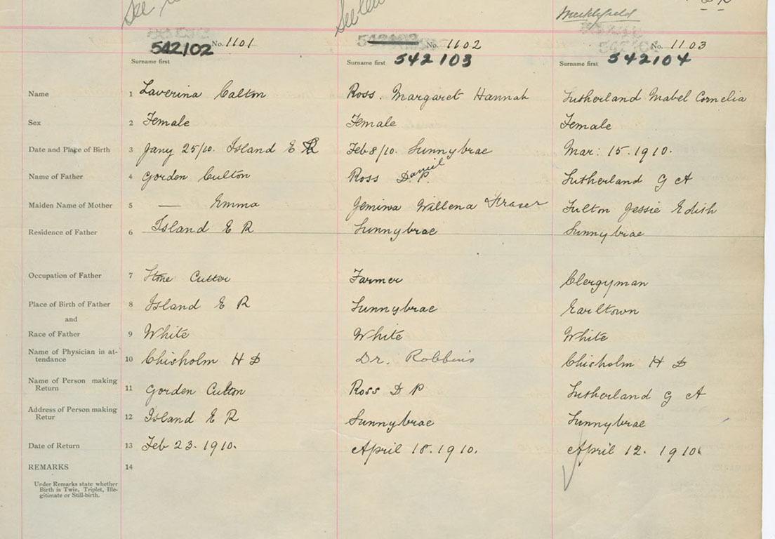 Female Birth Registration: Year: 1910 number: 54200104