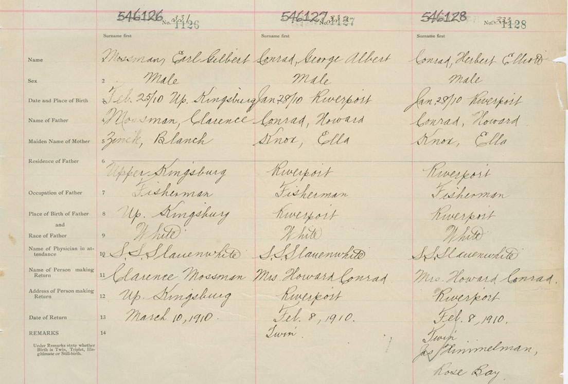 Male Birth Registration: Year: 1910 number: 54600126
