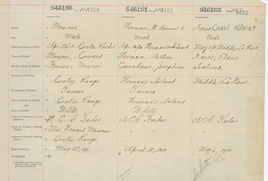 Male Birth Registration: Year: 1910 number: 54600150