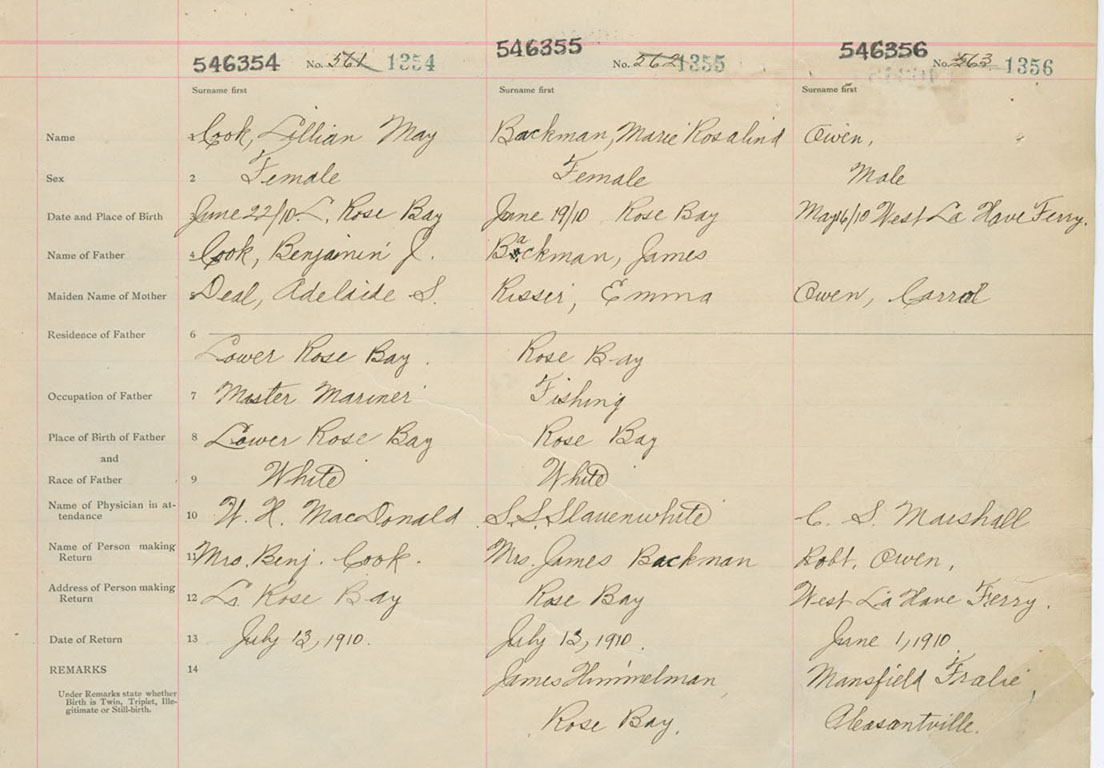 Female Birth Registration: Year: 1910 number: 54600354