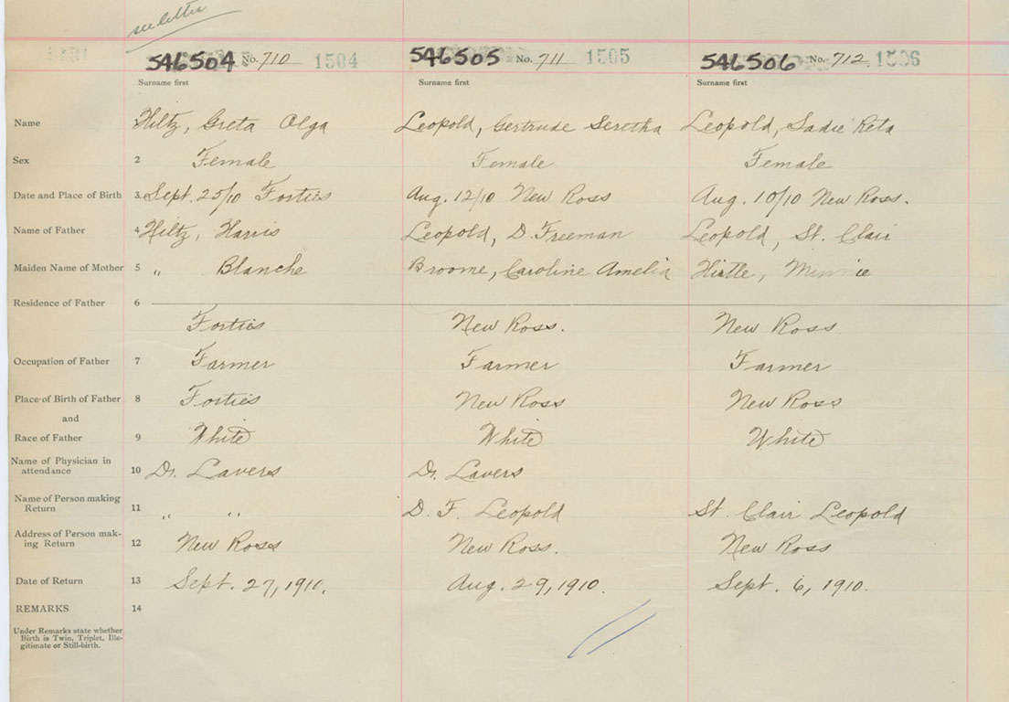 Female Birth Registration: Year: 1910 number: 54600504