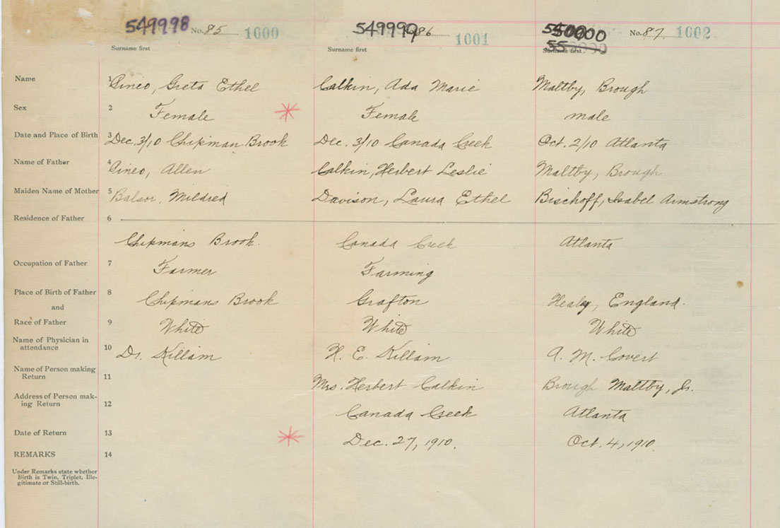 Male Birth Registration: Year: 1910 number: 55000000