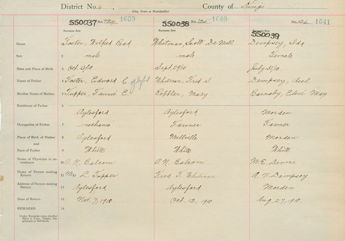 Female Birth Registration: Year: 1910 number: 55000039