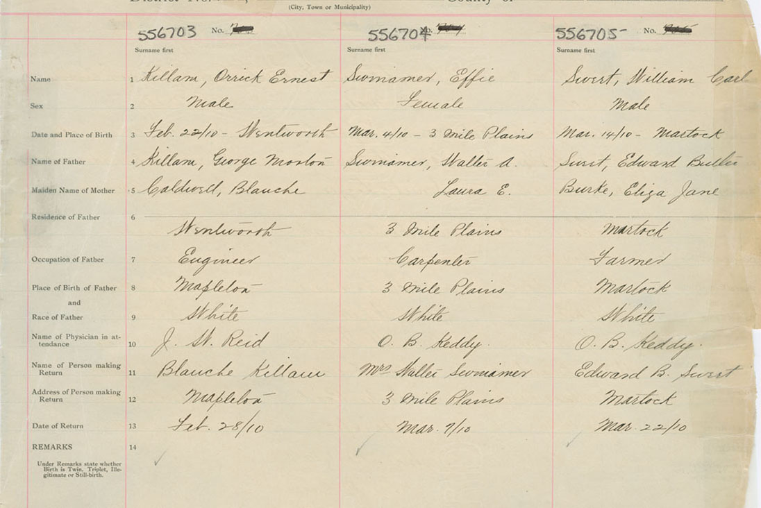 Male Birth Registration: Year: 1910 number: 55600705