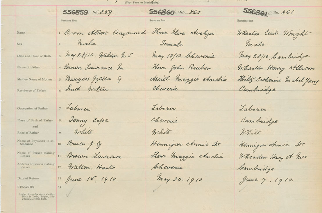 Male Birth Registration: Year: 1910 number: 55600861