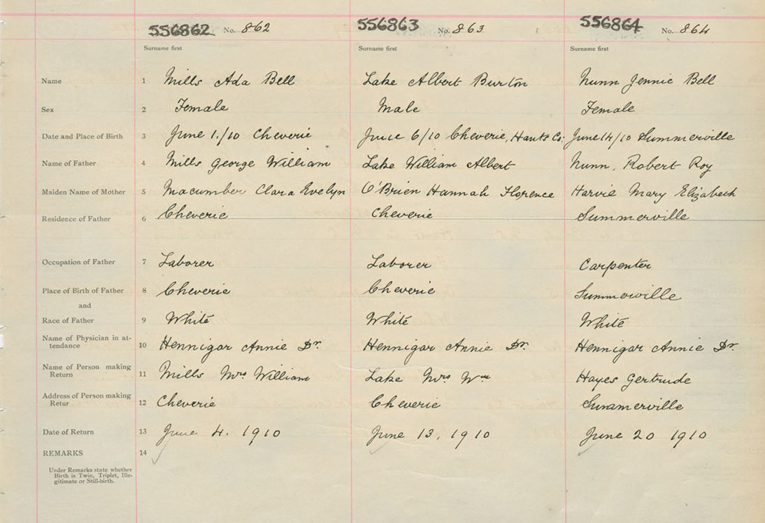 Female Birth Registration: Year: 1910 number: 55600864